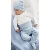 Pastelově modré bavlněné zavinovací body pochází z kolekce Hello značky Pinokio. Pro tu jsou typické jemné tlumené odstíny v růžových, modrých, krémových a šedých barvách.